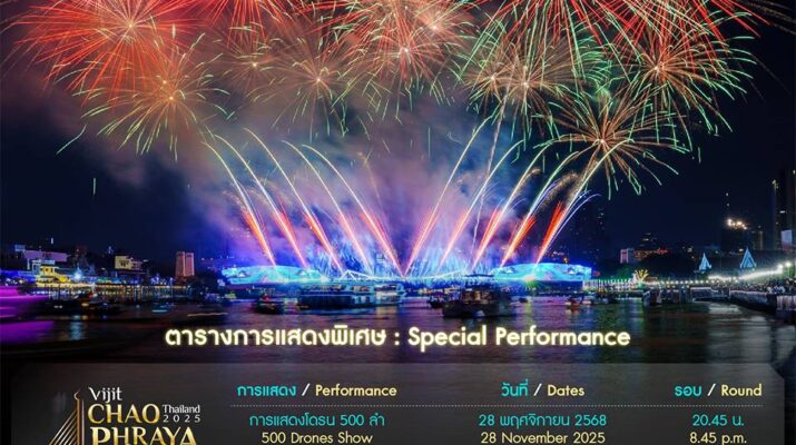 พบกับการแสดงสุดพิเศษ ยิ่งใหญ่ อลังการ ตระการตา ในงาน Vijit Chao Phraya 2025 ภายใต้แนวคิด “แสงแห่งสยาม แม่ของแผ่นดิน The Light of Siam, the Mother of the Nation” บริเวณสะพานปฐมบรมราชานุสรณ์ (สะพานพระพุทธยอดฟ้า) กรุงเทพมหานคร