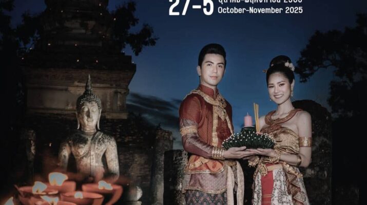26 ต.ค. 68 งานประเพณี ลอยกระทงเผาเทียน เล่นไฟ จังหวัดสุโขทัย ประจำปี 2568 กำหนดจัดตามเดิมตามที่วางแผนไว้ครั้งแรก เพียงปรับโทนของงานให้เป็นทางการถวายอาลัย รวมทั้้งงดการจุดพลุแสงสีสัน โดยให้ใช้พลุตะไลไฟพะเนียงตามแบบประเพณีโบราณ และงดกิจกรรมการประกวดนางนพมาศ