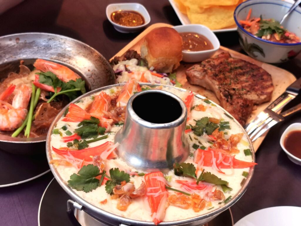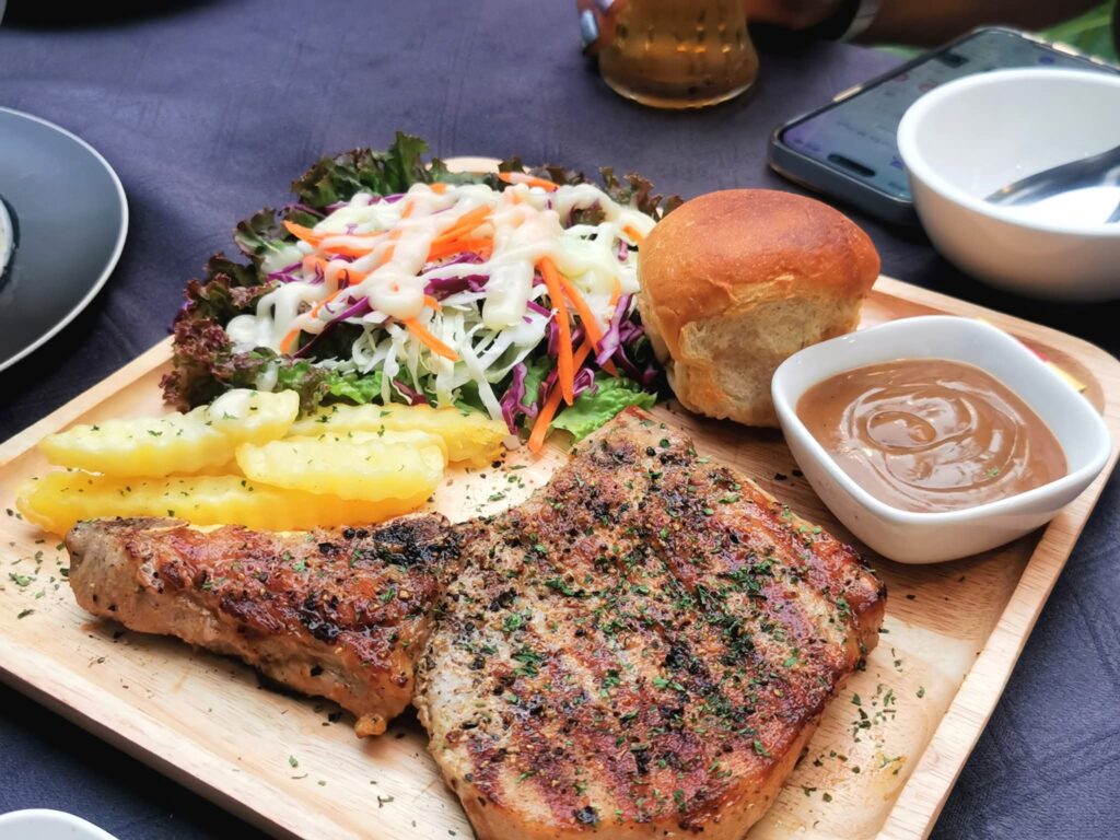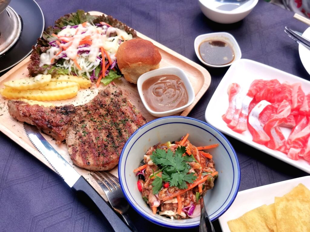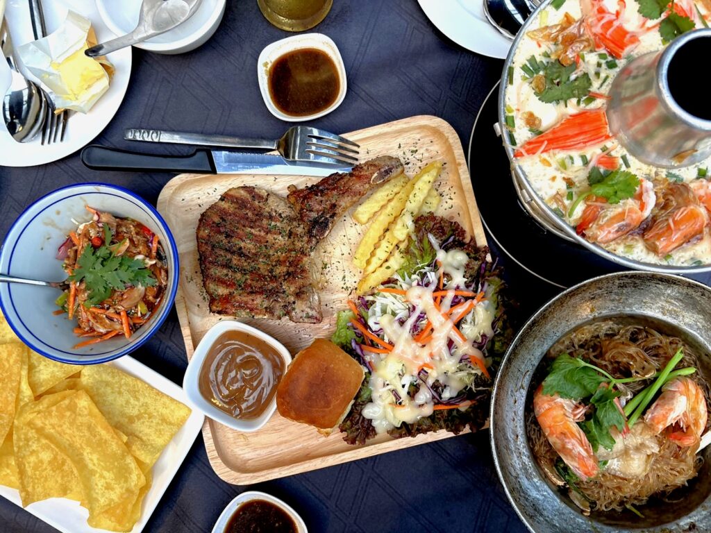 สำหรับเมนูที่อยากแนะนำบอกเลยว่าสุดยอดมากเห็นน่าตาและราคาสุดประทับใจต่างจากที่เคยสัมผัสมา คือ “เมนูเสต็ก” ร้านจัดมาอย่างสวยงามเลอค่าแบบไม่หวงเครื่องแทบไม่น่าเชื่อราคาเบาเกินหน้าตา ไม่ว่าจะเป็น สเต็กเนื้อโคขุนพรีเมี่ยม, พอร์คช็อปชิ้นโต เสิร์ฟมาบนถาดไม้จัดวางมาอย่างสวยงาม เคียงข้างด้วยผักสลัดปลอดสารที่ได้จากชุมชน แถมอร่อยจนหยุดไม่ได้ เมนูต่อไป “ไข่ตุ๋นทรงเครื่องหม้อไฟทะเล” เมนูนี้บอกเลยว่าอร่อยถูกใจมาก รสชาติกลมกล่อมละมุน เนื้อสัมผัสไข่ตุ๋นนุ่มเด้งอร่อยฟินเลย