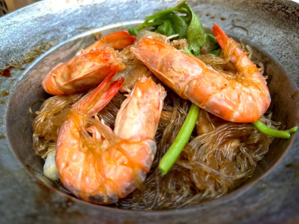 เมนูต่อไปก็ใช่ย่อย “กุ้งอบวุ้นเส้น” เป็นอะไรที่อยากแนะนำเห็นเขาทำออกมาดูง่ายๆ แต่อร่อยไม่ธรรมดา เปิดฝาหม้ออบออกมาสัมผัสกลิ่นของความอร่อยเตะจมูกทีเดียว