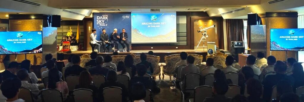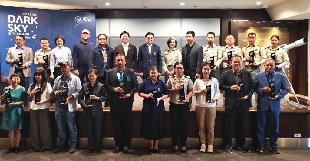 โดยหนึ่งในโครงการสำคัญอย่าง AMAZING DARK SKY IN THAILAND #Season 4 นับเป็นการบูรณาการการทำงานร่วมกับ ททท. ซึ่งจัดขึ้นต่อเนื่องเข้าสู่ปีที่ 4 เพื่อรณรงค์ให้สังคมตระหนักถึงผลกระทบจากมลภาวะทางแสง อนุรักษ์ความมืดของท้องฟ้า และให้ความสำคัญในการประหยัดพลังงานและปรับพฤติกรรมการใช้แสงไฟ โดยใช้ดาราศาสตร์มากระตุ้นการท่องเที่ยวเชิงสร้างสรรค์ ซึ่งในช่วง 3 ปีที่ผ่านมา ได้มีการประกาศรายชื่อพื้นที่ที่ได้รับการขึ้นทะเบียนเป็นเขตอนุรักษ์ท้องฟ้ามืดของประเทศไทยแล้วทั้งสิ้น 48 พื้นที่ครอบคลุมทุกภูมิภาคของประเทศไทย และในปี 2568 ได้มีการขึ้นทะเบียนอีก 16 พื้นที่เพิ่มเติม เพื่อเป็นแหล่งท่องเที่ยวดูดาวแห่งใหม่ของประเทศไทย นับเป็นก้าวสำคัญที่ช่วยเปิดมิติใหม่ให้กับการท่องเที่ยวไทย ด้วยเสน่ห์ของท้องฟ้ายามค่ำคืนและความงดงาม