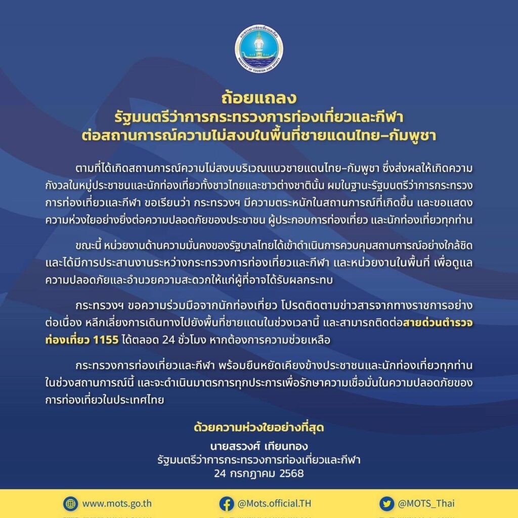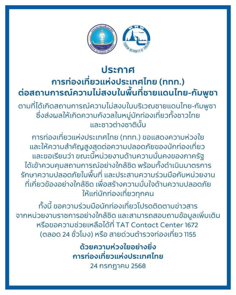 Phuket Province extends its deepest condolences for the loss of life and property resulting from the recent unrest along the Thai–Cambodian border. Our thoughts are with those affected, and we hope for a swift and peaceful resolution to the situation.