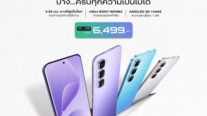 กรุงเทพฯ, 30 กรกฎาคม 2568 – อินฟินิกซ์ (Infinix) แบรนด์สมาร์ทโฟนระดับโลกที่คุ้มค่า ครบครันทุกการใช้งาน และตอบโจทย์ไลฟ์สไตล์คนรุ่นใหม่ เปิดตัวสมาร์ทโฟนซีรีส์ใหม่ล่าสุด Infinix HOT 60 Pro Series อย่างเป็นทางการในประเทศไทย นำโดยรุ่นไฮไลท์ Infinix HOT 60 Pro+ ที่มาพร้อมดีไซน์จอโค้ง 3 มิติสุดล้ำ บางที่สุดในโลกเพียง 5.95 มิลลิเมตร และหนักเพียง 155 กรัม โดดเด่นทั้งด้านความบางเบา ประสิทธิภาพ และความทนทาน พร้อมส่งมอบประสบการณ์ใช้งานระดับเรือธงในราคาจับต้องได้ เปิดตัวมาพร้อมกับรุ่น HOT 60 Pro และ HOT 60i ที่ออกแบบมาเพื่อตอบสนองความต้องการที่หลากหลายของผู้บริโภครุ่นใหม่ทั่วโลก