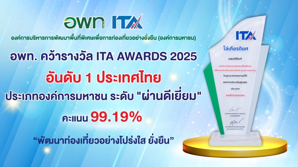 ในปีนี้ อพท. ได้รับรางวัลในฐานะหน่วยงานที่ได้รับคะแนนประเมินสูงสุดเป็นอันดับ 1 ในประเภทองค์การมหาชน มีคะแนนถึง 99.19% อยู่ในระดับ “ผ่านดีเยี่ยม” รางวัลนี้เป็นเครื่องยืนยันถึงความมุ่งมั่นของ อพท. ในการดําเนินงานพัฒนาท่องเที่ยว ด้วยความโปร่งใสและยึดหลักธรรมาภิบาล โดยจะมุ่งมั่นเดินหน้าสานต่อแนวทางการพัฒนาท่องเที่ยวอย่างยั่งยืนนี้ต่อไป