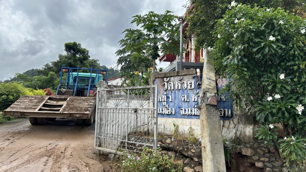 ต่อมาทีมแม่ฮ่องสอนท่องเที่ยวพลัสได้ลงพื้นที่บ้านห้วยโป่ง หมู่ 1 ตำบลห้วยโป่งอำเภอเมือง จังหวัดแม่ฮ่องสอน เพื่อสอบถามความคืบหน้าการก่อสร้างสะพานแบริ่งสำหรับเปิดเส้นทางคมนาคมแทนสะพานบ้านห้วยโป่งที่ชำรุดเสียหายจากเหตุน้ำป่าไหลหลากเมื่อวันที่ 27 สิงหาคม 2568 ที่ผ่านมา บริเวณหน้าวัดห้วยโป่ง ทางหลวงหมายเลข 108 บริเวณหลัก กม.ที่ 317 + 190 ซึ่งจุดดังกล่าวห่างจากตัวเมืองแม่ฮ่องสอนประมาณ 40 กิโลเมตร และเป็นเส้นทางสัญจรหลักที่สำคัญระหว่างตัวเมืองแม่ฮ่องสอนลงมายังอำเภอทางด้านสายใต้เชื่อมกับอำเภอขุนยวม อำเภอแม่ลาน้อย อำเภอแม่สะเรียง และอำเภอสบเมย โดยได้รับข้อมูลจากแขวงการทางจังหวัดแม่ฮ่องสอนว่าสะพานดังกล่าวจะสามารถเปิดให้บริการสัญจรได้ชั่วคราวตั้งแต่วันที่ 1 กันยายน 2568 ซึ่งสามารถรองรับน้ำหนักได้ไม่เกิน 21 ตัน โดยรถบัสโดยสารประจำทาง แม่ฮ่องสอน – กรุงเทพฯ ยังไม่สามารถให้บริการนเส้นทางนี้ได้ จนกว่าสะพานแบริ่งจะแล้วเสร็จ