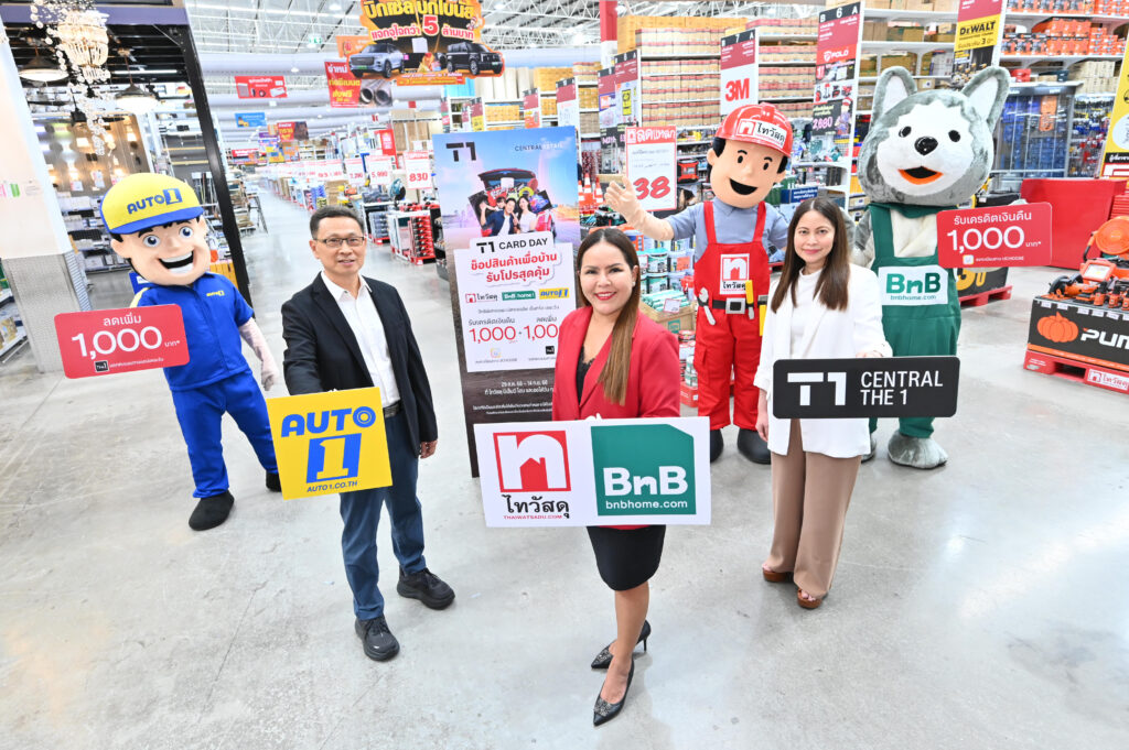 ไทวัสดุ และบีเอ็นบี โฮม ผู้นำธุรกิจค้าปลีกวัสดุก่อสร้างและของตกแต่งบ้าน และออโต้วัน (AUTO1) ศูนย์บริการรถยนต์ครบวงจร ในเครือเซ็นทรัล รีเทล ผนึกกำลังบัตรเครดิตเซ็นทรัล เดอะวัน ตอนรับกระแสช้อปบ้านให้คุ้มแบบฉลาดเลือกกับโปรแรงแห่งปี! จัดเต็มอีกครั้งกับแคมเปญสุดเอ็กซ์คลูซีฟ T1 Card Day ช็อปสินค้าเพื่อบ้าน รับโปรสุดคุ้ม รับ 1,000 ลด 1,000 สุดยอดโปรเพื่อคนรักบ้านและรถ พร้อมสิทธิพิเศษ 2 ต่อสุดคุ้ม เพียงช้อปสินค้าที่ ไทวัสดุ บีเอ็นบี โฮม หรือใช้บริการที่ออโต้วัน ครบ 10,000 บาทต่อเซลล์สลิป รับเครดิตเงินคืน 1,000 บาท รับส่วนลดเพิ่มอีก 1,000 บาท ตอบโจทย์ไลฟ์สไตล์นักช้อปยุคใหม่ที่ต้องการดีลคุ้มค่า ทั้งสายซ่อมบ้าน สายแต่งบ้าน และสายดูแลรถ มาเลือกช้อปสินค้าและใช้บริการได้อย่างมั่นใจ ตั้งแต่วันที่ 29 สิงหาคม – 14 กันยายน 2568 ที่ทุกสาขา