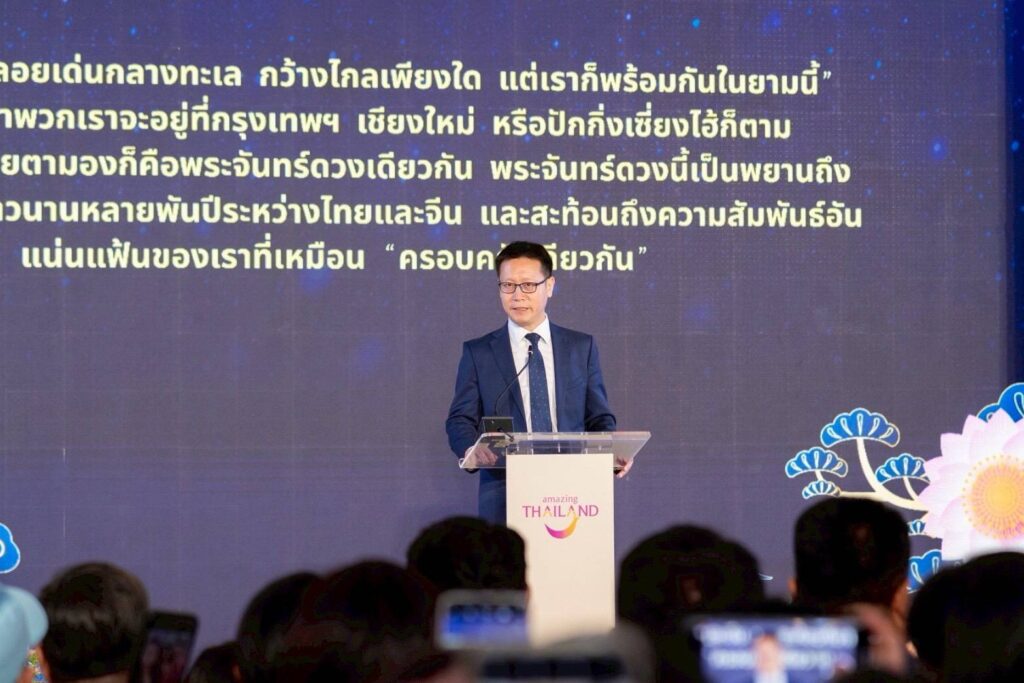 เย็นวานนี้ (6 ตุลาคม 2568) ณ One Bangkok กระทรวงการท่องเที่ยวและกีฬา โดยการท่องเที่ยวแห่งประเทศไทย (ททท.) จัดงานค่ำคืนแห่งแสงจันทร์ “Amazing Thailand, Mid-Autumn Night 2025” เฉลิมฉลองเทศกาลไหว้พระจันทร์ และ 50 ปี ความสัมพันธ์ทางการทูตไทย–จีน พร้อมต้อนรับคณะครีเอเตอร์และ KOLs จากจีนกว่า 100 คน เดินทางมาสร้างคอนเทนต์ถ่ายทอด “เสน่ห์ไทย” ผ่านโครงการ Thailand, Told by You – UGC Challenge & FAM Trip ภายใต้แนวคิด “5 Must Do in Thailand” เพื่อกระตุ้นแรงบันดาลใจและความมั่นใจในการเดินทางท่องเที่ยวไทย