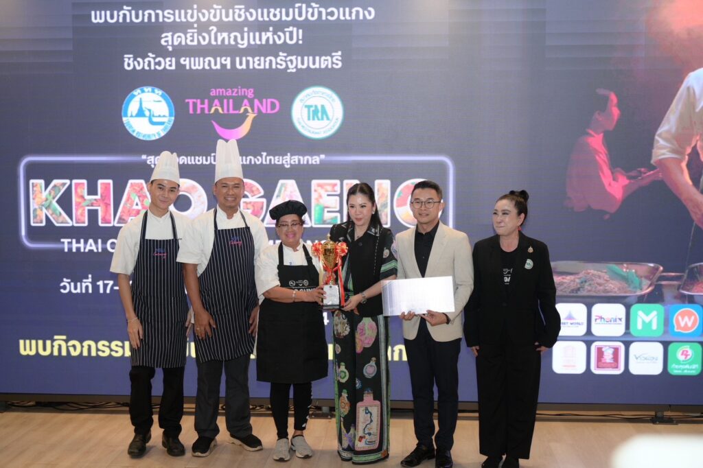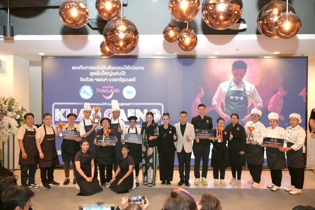 (วันที่ 19 ตุลาคม 2568) ณ ห้าง Phenix ประตูน้ำ การท่องเที่ยวแห่งประเทศไทย (ททท.) ร่วมกับสมาคมภัตตาคารไทย และพันธมิตร ประกาศสุดยอดแชมป์ “Khao Gaeng Thai Curry Rice Championship 2025” รับถ้วยเกียรติยศจาก ฯพณฯ อนุทิน ชาญวีรกูล นายกรัฐมนตรี โดยได้รับเกียรติจากนางสาวฐาปนีย์ เกียรติไพบูลย์ ผู้ว่าการ ททท. เป็นประธานมอบโล่ห์รางวัล พร้อมด้วย นางฐนิวรรณ กุลมงคล นายกสมาคมภัตตาคารไทย และคณะผู้บริหารจากภาครัฐ–เอกชน ร่วมเป็นเกียรติในพิธี
