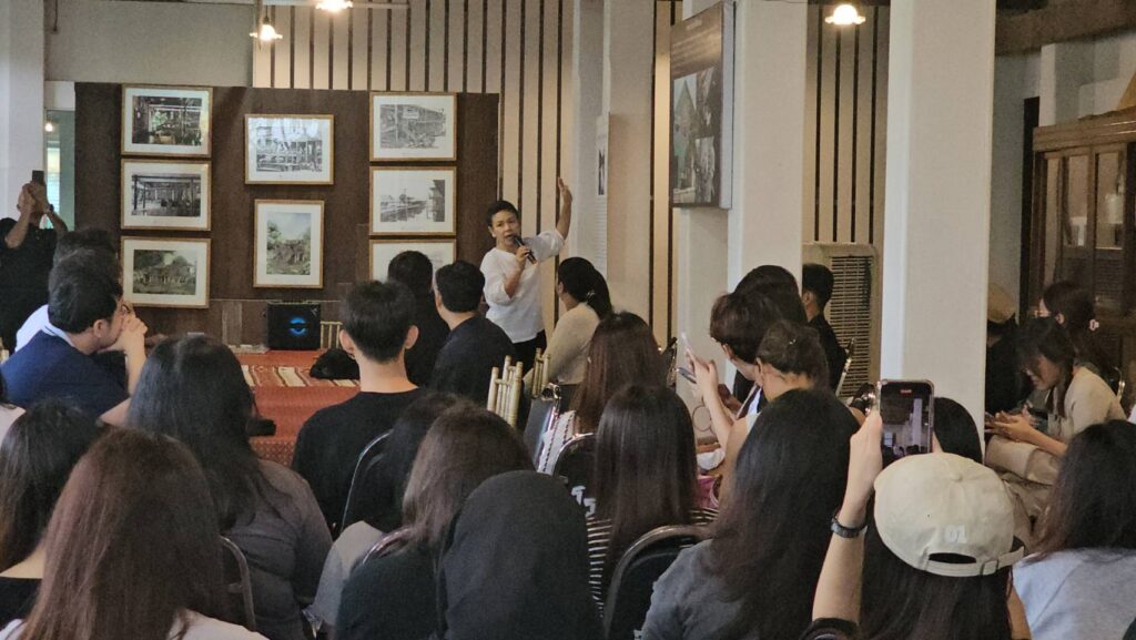 เมื่อวันที่ 2 พฤศจิกายน 2568 เวลา 10.00 น. ที่ผ่านมา คณะอาจารย์และนักศึกษา คณะเศรษฐศาสตร์ มหาวิทยาลัยธรรมศาสตร์ จัดโครงการศึกษานอกสถานที่ซึ่งเป็นส่วนหนึ่งของวิชา ศ. 383 เศรษฐศาสตร์เชิงวัฒนธรรมในระดับปริญญาตรี โดยมี ผศ.สิทธิกร นิพภยะ ผู้รับผิดชอบวิชา นำนักศึกษามาศึกษาการบริหารจัดการพิพิธภัณฑ์เอกชน ประวัติศาสตร์ท้องถิ่นและชุมชนตำบลต้นตาล อำเภอสองพี่น้อง จังหวัดสุพรรณบุรี ได้เข้าเยี่ยมชม พิพิธภัณฑ์ประพาสต้น บ้านจีนกั๊ก ตลาดบางลี่ จำนวนกว่า 80 คน โดยคุณกรองแก้ว ดารายน สันตะบุตร และคุณ จริย์วัฒน์ สันตะบุตร ให้การต้อนรับและบรรยายประวัติความเป็นมา