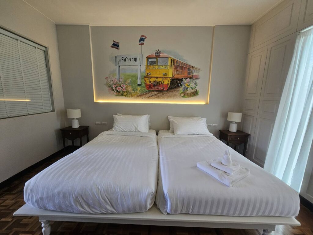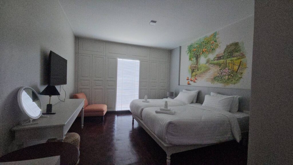 ปัจจุบัน ได้มีการปรับปรุงพื้นที่แบ่งสัดส่วนสำหรับทำโรงแรมที่พักชื่อ บ้านจีนกั๊ก มีเพียง 8 ห้องและร้านกาแฟอยู่ชั้นหนึ่ง ซึ่งเปิดให้บริการเพื่อหล่อเลี้ยงค่าใช้จ่ายในการบริหารจัดการพิพิธภัณฑ์ โดยห้องพักแต่ละห้องมีการออกแบบตกแต่งให้แตกต่างกันและเรียกขานชื่อห้องตามเรื่องราวของตำบลต่างๆของอำเภอสองพี่น้อง จังหวัดสุพรรณบุรี ทุกห้องมีสิ่งอำนวยความสะดวกครบครัน