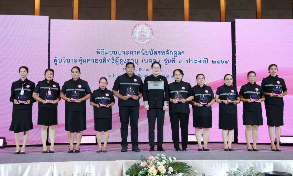 สำหรับการดำเนินโครงการบริบาลและคุ้มครองสิทธิผู้สูงอายุในชุมชน ในปี 2569 มีการขยายผลครอบคลุมทุกอำเภอทั่วประเทศ รวม 268 พื้นที่ ใน 76 จังหวัด ซึ่งมีผู้สำเร็จการอบรมหลักสูตรผู้บริบาลคุ้มครองสิทธิผู้สูงอายุ (บสส.) จำนวนทั้งสิ้น 587 คน โดยผ่านการประเมินทั้งภาคทฤษฎี ภาคปฏิบัติ และการฝึกงานครบถ้วน อีกทั้งได้รับความร่วมมือจากภาคีเครือข่าย โดยเฉพาะ สวทช. ในการพัฒนาระบบ “Nirun for Community” เพื่อสนับสนุนการปฏิบัติงานของผู้บริบาลคุ้มครองสิทธิผู้สูงอายุให้มีประสิทธิภาพยิ่งขึ้น